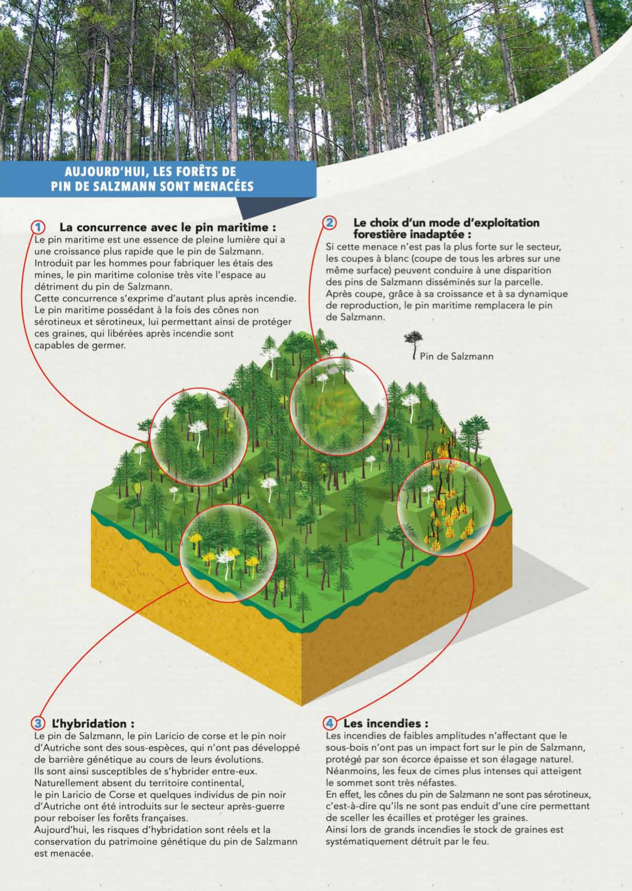 La commune possède sur son territoire une espèce de Pins protégés : le Pin de Salzmann faisant partis de l’essence forestière la plus rare. Il s’agit d’un arbre apparu il y a 2,5 millions d’années, à une époque où les feuillus n’existaient pas encore, ni les hommes bien sûr, ni même les Cévennes !